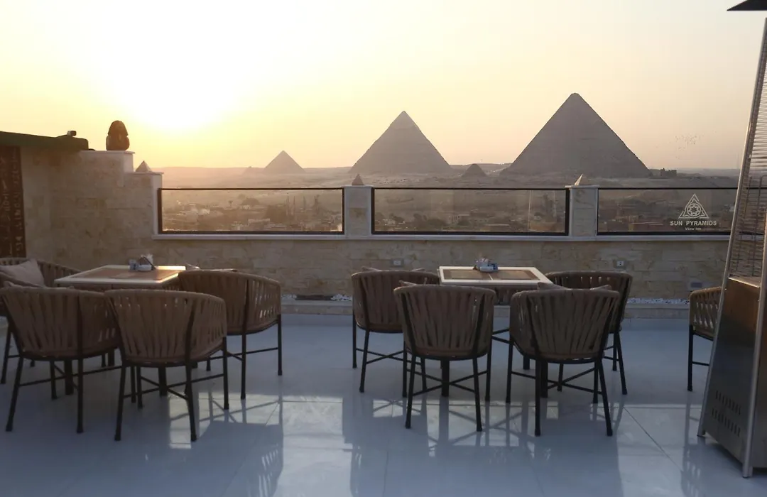 El hotel Apartment Alma Pyramids ofrece un desayuno continental. En los alrededores puedes comer en el restaurante First Class, a 12 minutos a pie del hotel.
